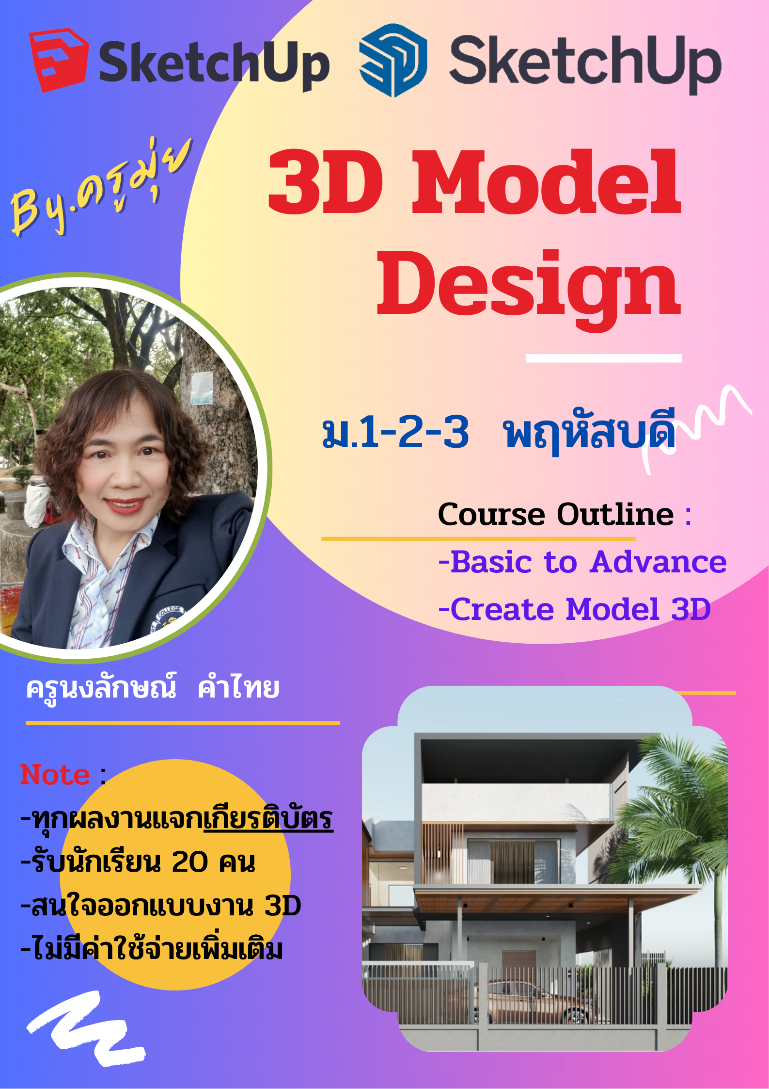 ชื่อวิชา : 3D Model Design by SketchUp.. ครูผู้สอน : นงลักษณ์ คำไทย ระดับชั้นที่เปิดสอน : ม.1 ม.2 ดูรายละเอียดเพิ่มเติม.. |