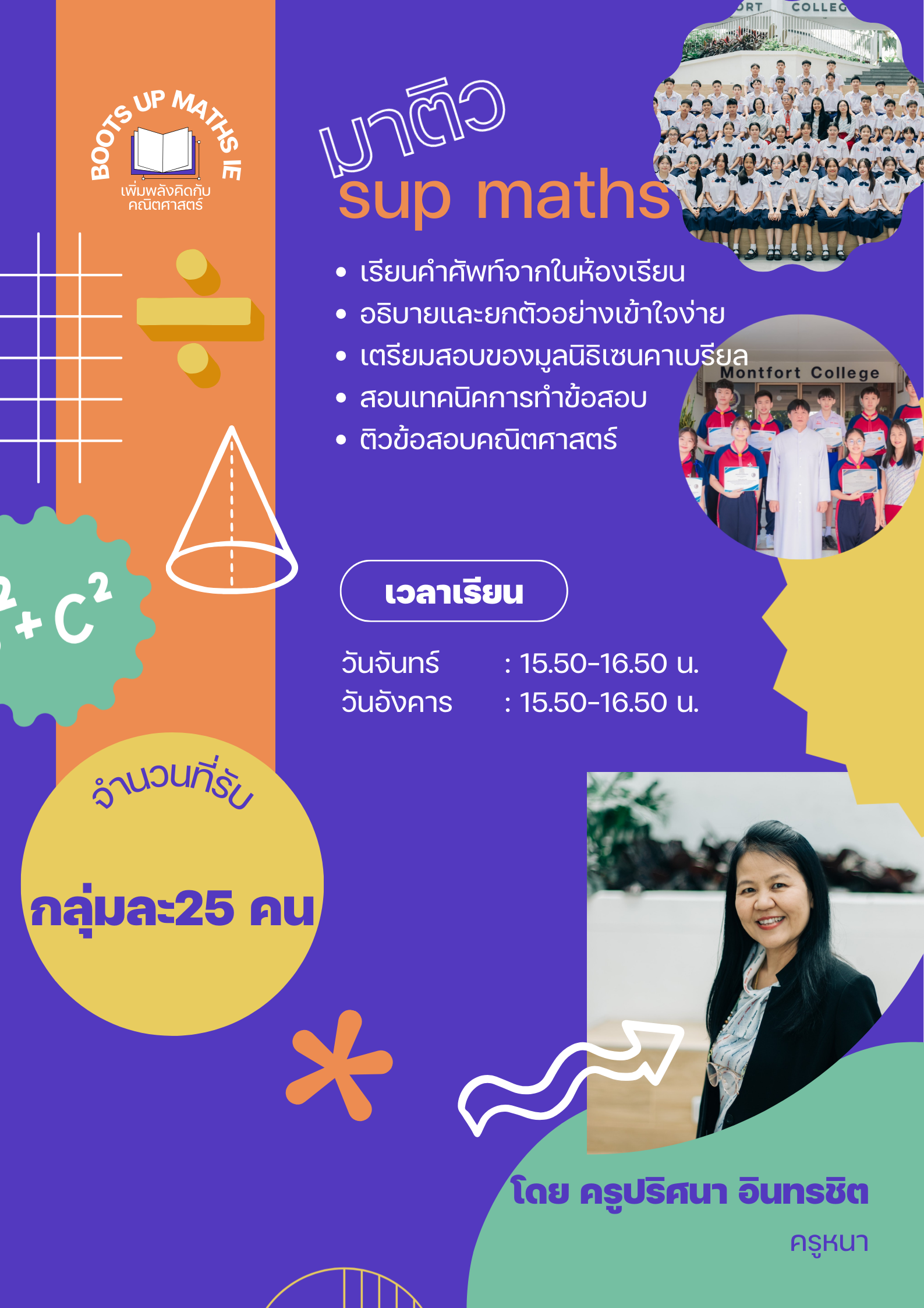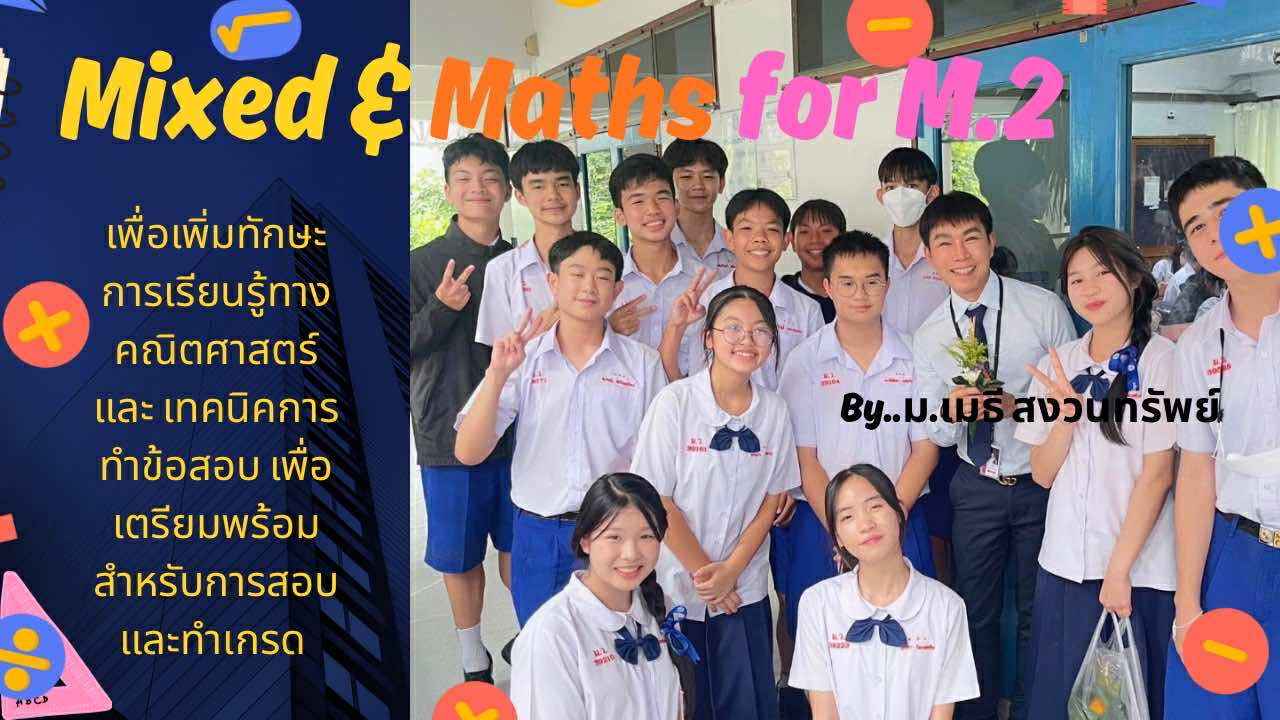 ชื่อวิชา : Mixed and Maths ครูผู้สอน : เมธี สงวนทรัพย์ ระดับชั้นที่เปิดสอน : ม.2 ดูรายละเอียดเพิ่มเติม.. |