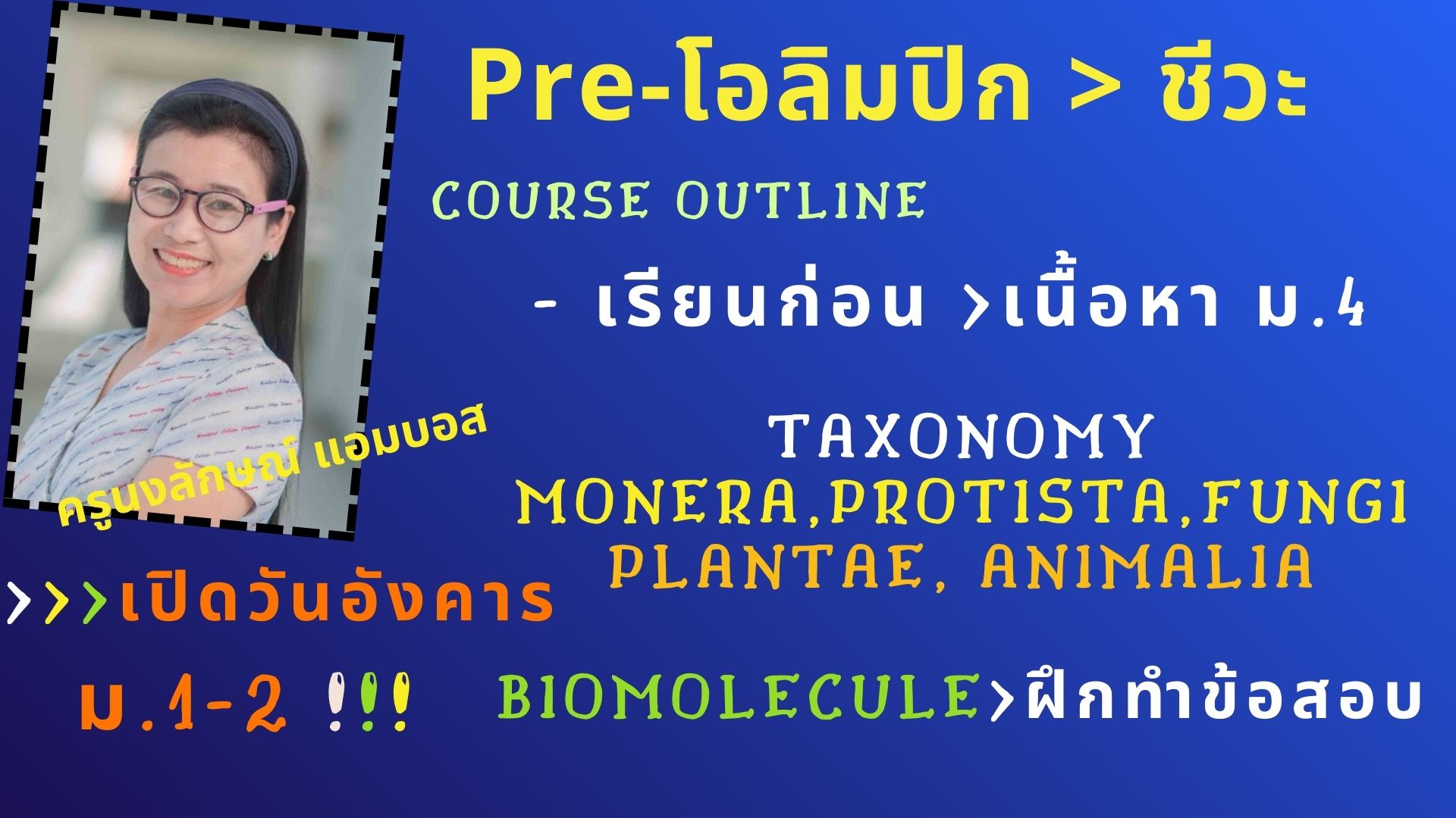 ชื่อวิชา : Pre-โอลิมปิก ชีวะ ครูผู้สอน : นงลักษณ์ แอมบอส ระดับชั้นที่เปิดสอน : ม.1 ม.2 ดูรายละเอียดเพิ่มเติม.. |