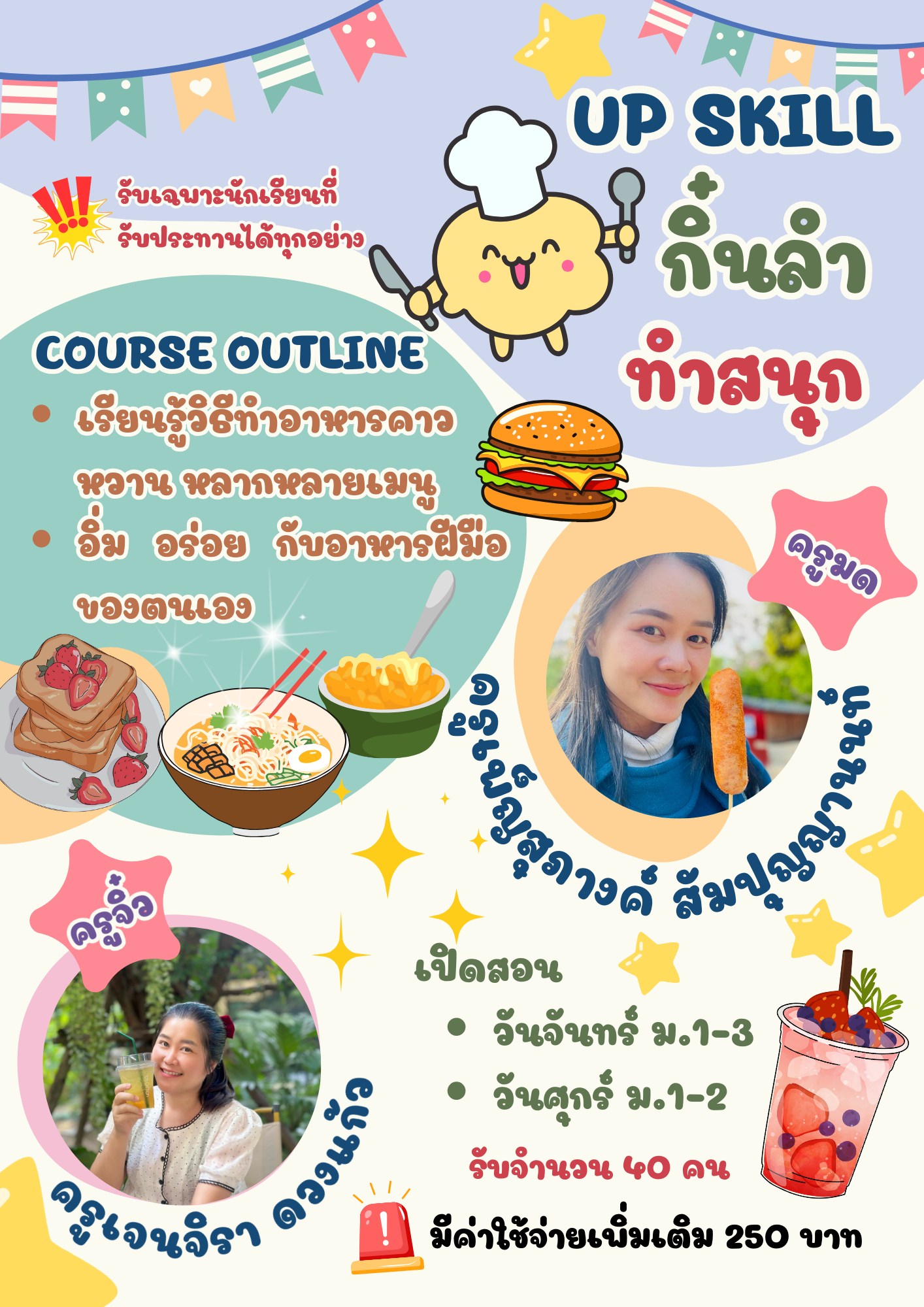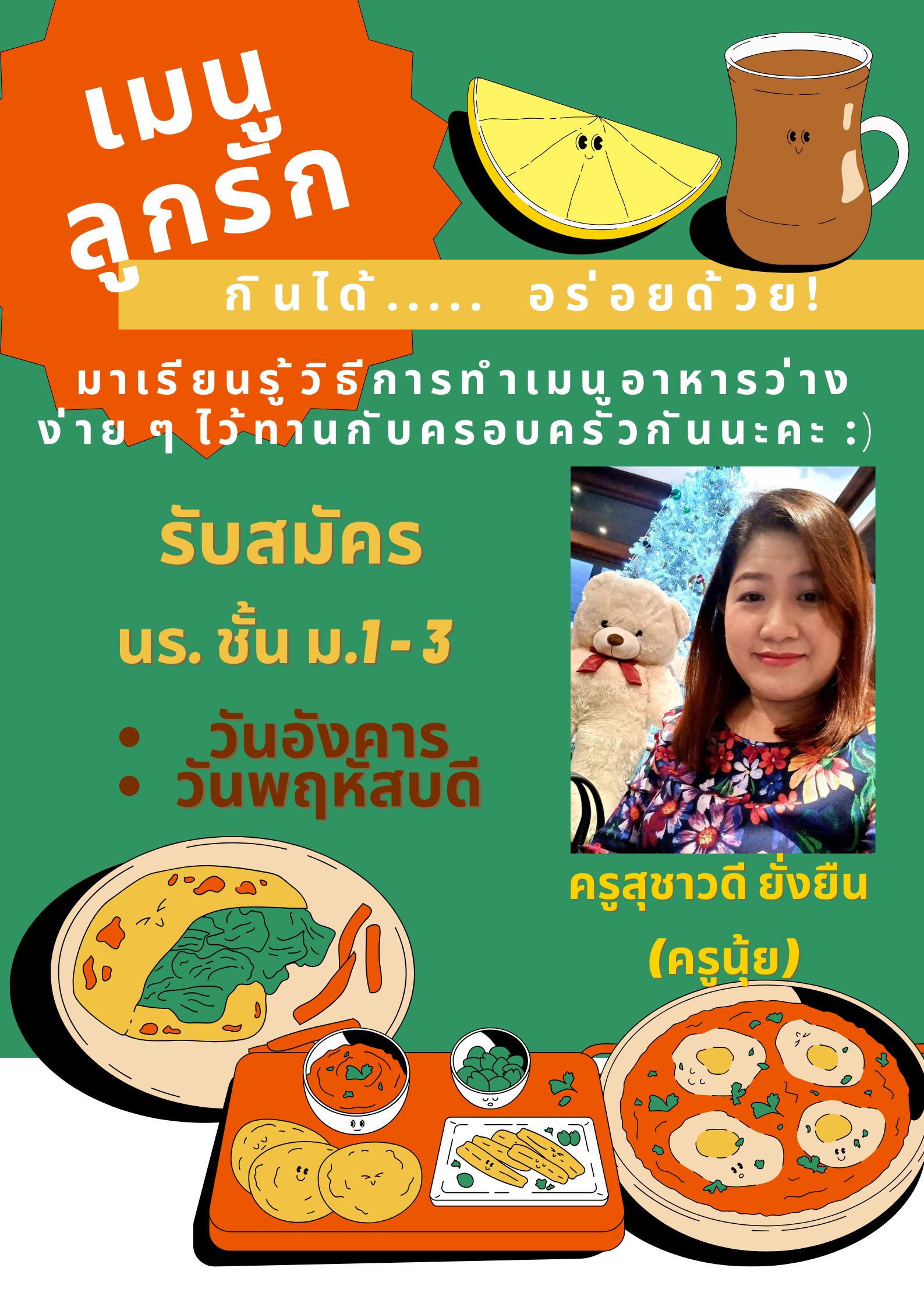 ชื่อวิชา : ทำสนุก กินอร่อย ครูผู้สอน : มยุรี ทำทอง ระดับชั้นที่เปิดสอน : ม.1 ม.2 ม.3 ดูรายละเอียดเพิ่มเติม.. |