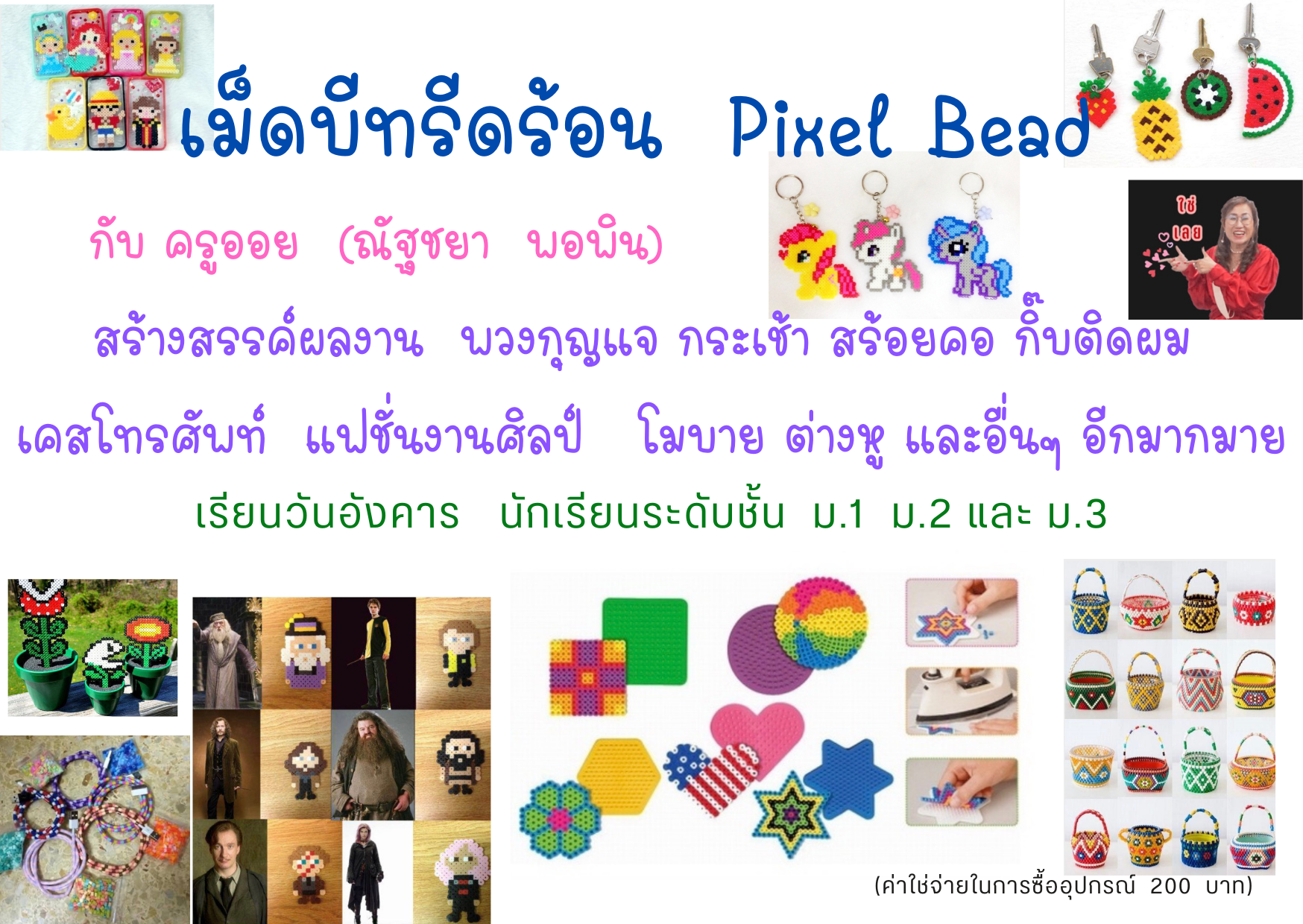 ชื่อวิชา : เม็ดบรีทรีดร้อน (Pixel  Bead) ครูผู้สอน : ณัฐชยา พอพิน ระดับชั้นที่เปิดสอน : ม.1 ม.2 ม.3 ดูรายละเอียดเพิ่มเติม.. |