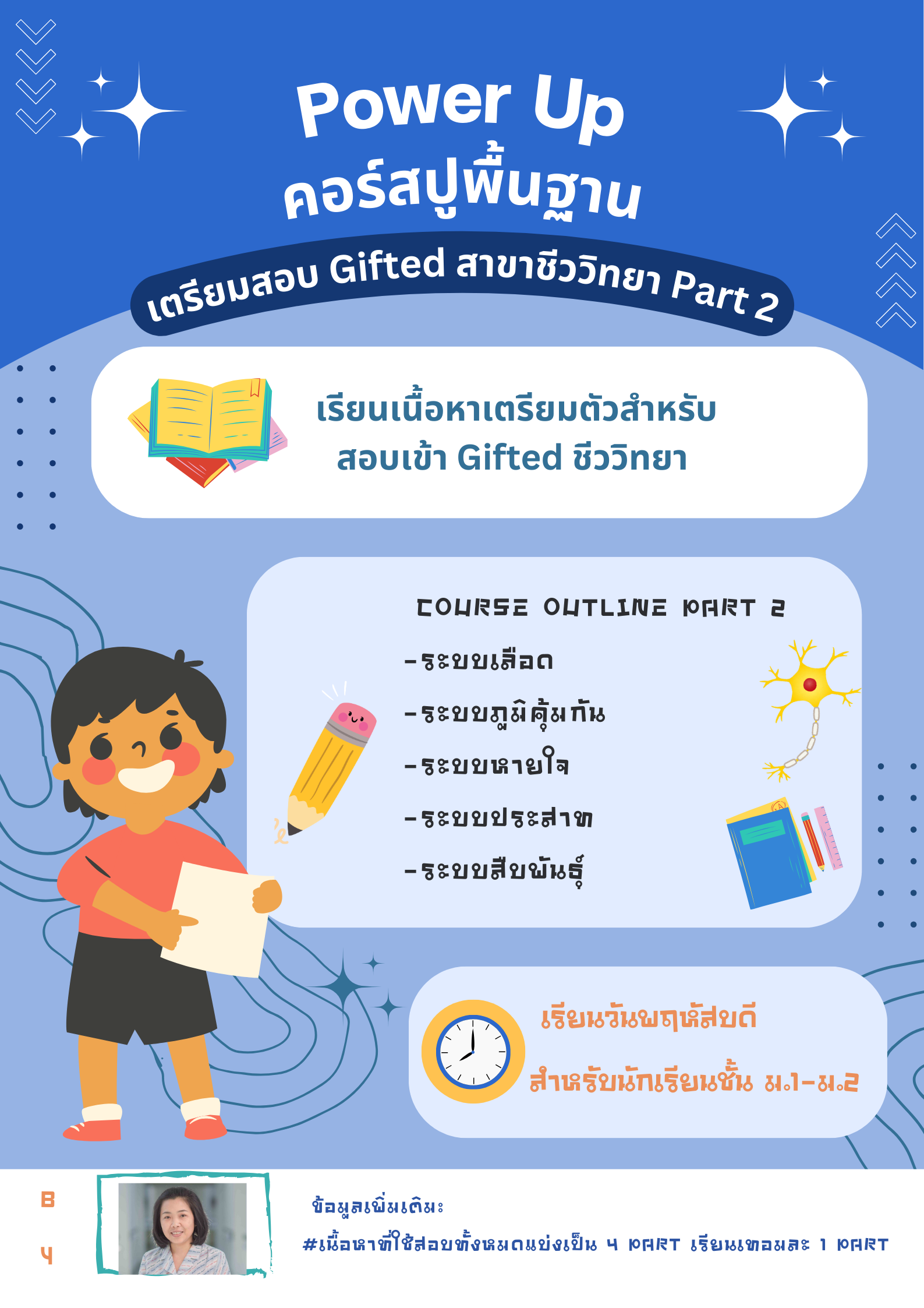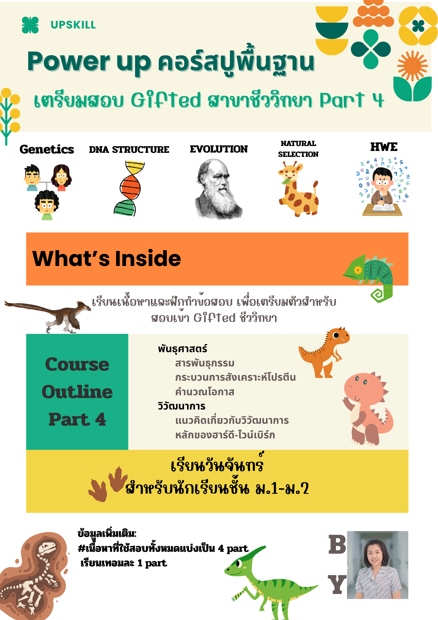 ชื่อวิชา :  คอร์สปูพื้นฐานเนื้อหาสำหรับเตรียมตัวสอบเข้า Gifted ชีววิทยา Part4 ครูผู้สอน : ทัศนีย์พร สุขโชติ ระดับชั้นที่เปิดสอน : ม.1 ม.2 ดูรายละเอียดเพิ่มเติม.. |