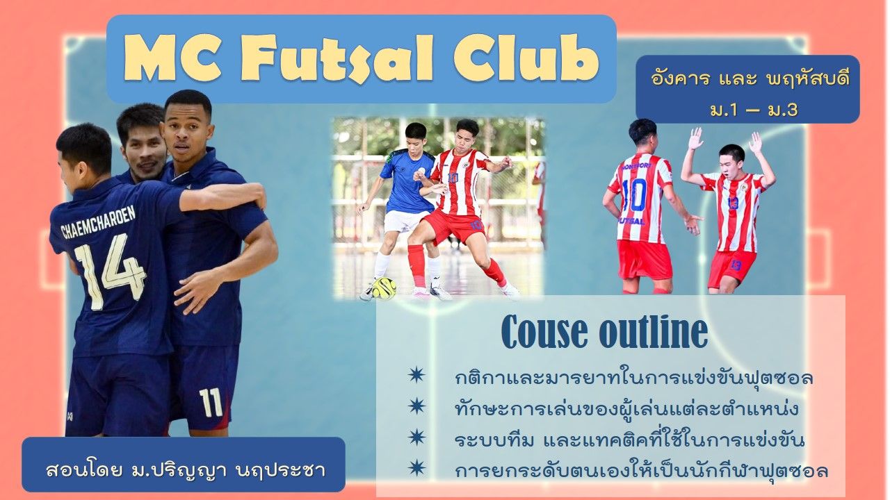ชื่อวิชา : MC futsal club ครูผู้สอน : ปริญญา นฤประชา ระดับชั้นที่เปิดสอน : ม.1 ม.2 ดูรายละเอียดเพิ่มเติม.. |