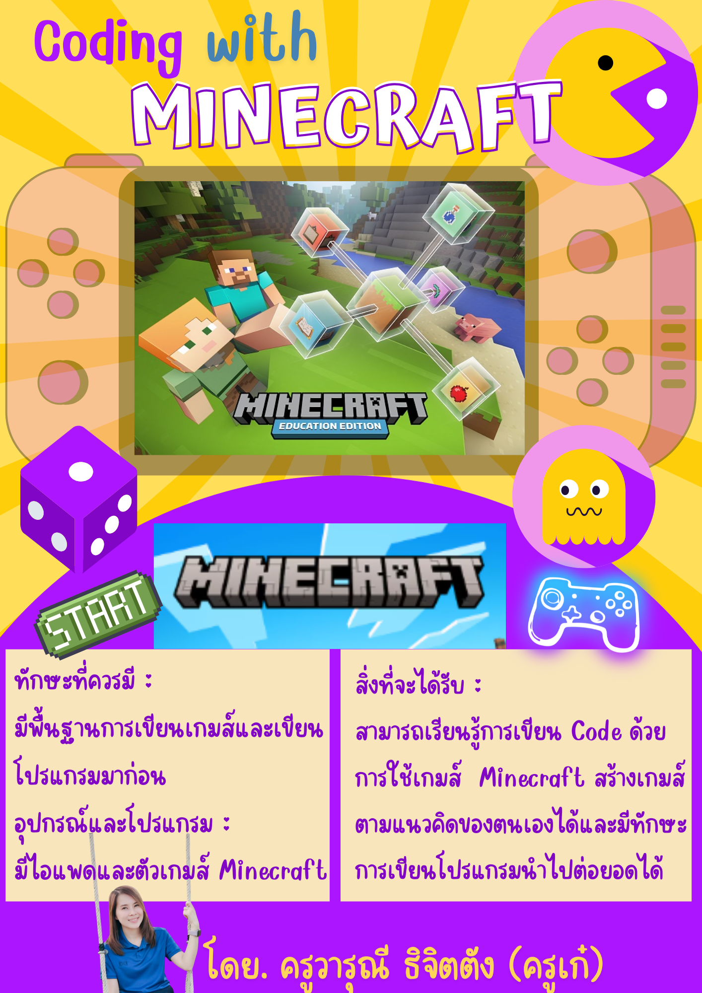 ชื่อวิชา : Coding with Minecraft  ครูผู้สอน : วารุณี ธิจิตตัง ระดับชั้นที่เปิดสอน : ม.1 ม.2 ม.3 ดูรายละเอียดเพิ่มเติม.. |