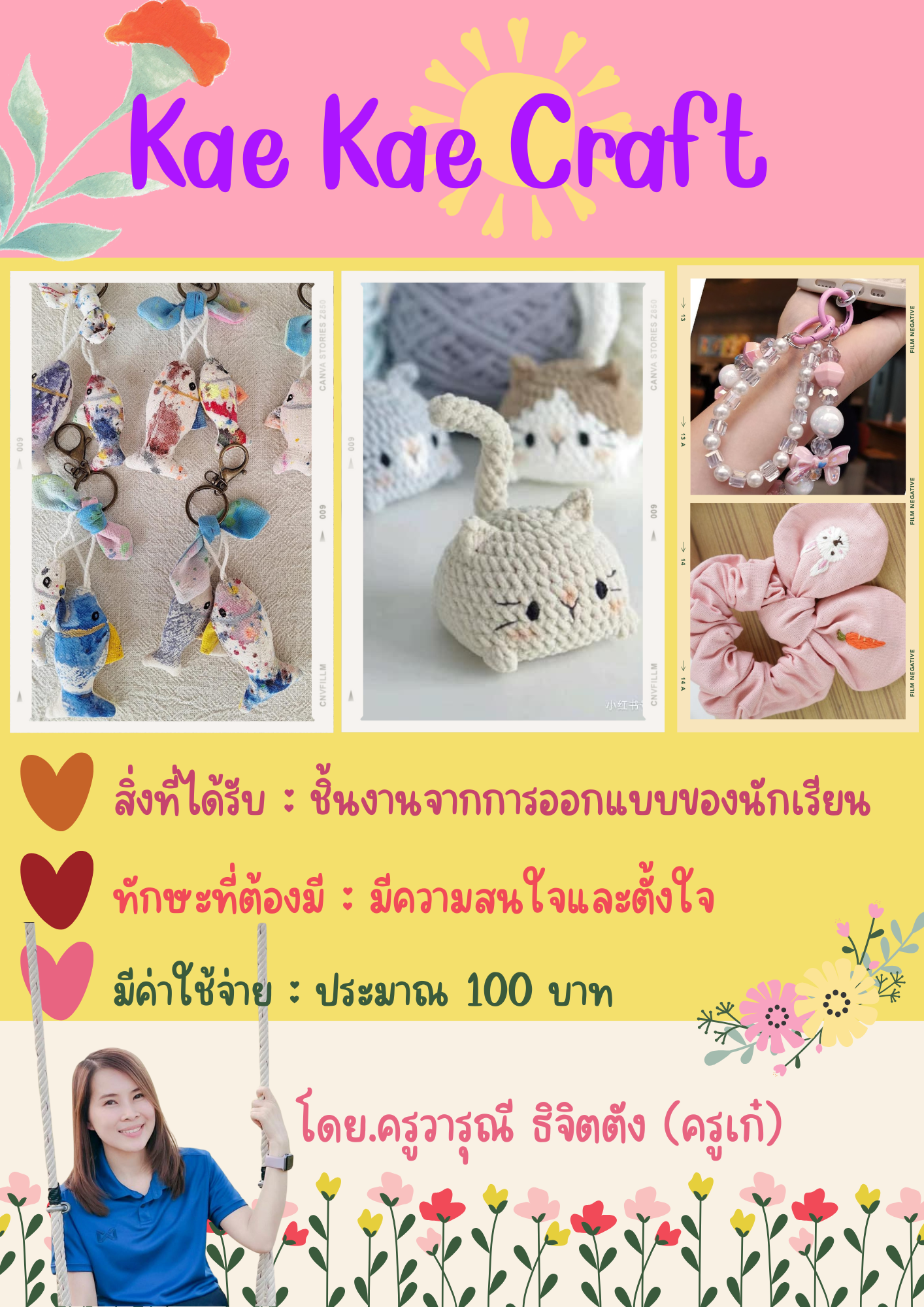 ชื่อวิชา : KaeKae Craft  ครูผู้สอน : วารุณี ธิจิตตัง ระดับชั้นที่เปิดสอน : ม.1 ม.2 ม.3 ดูรายละเอียดเพิ่มเติม.. |