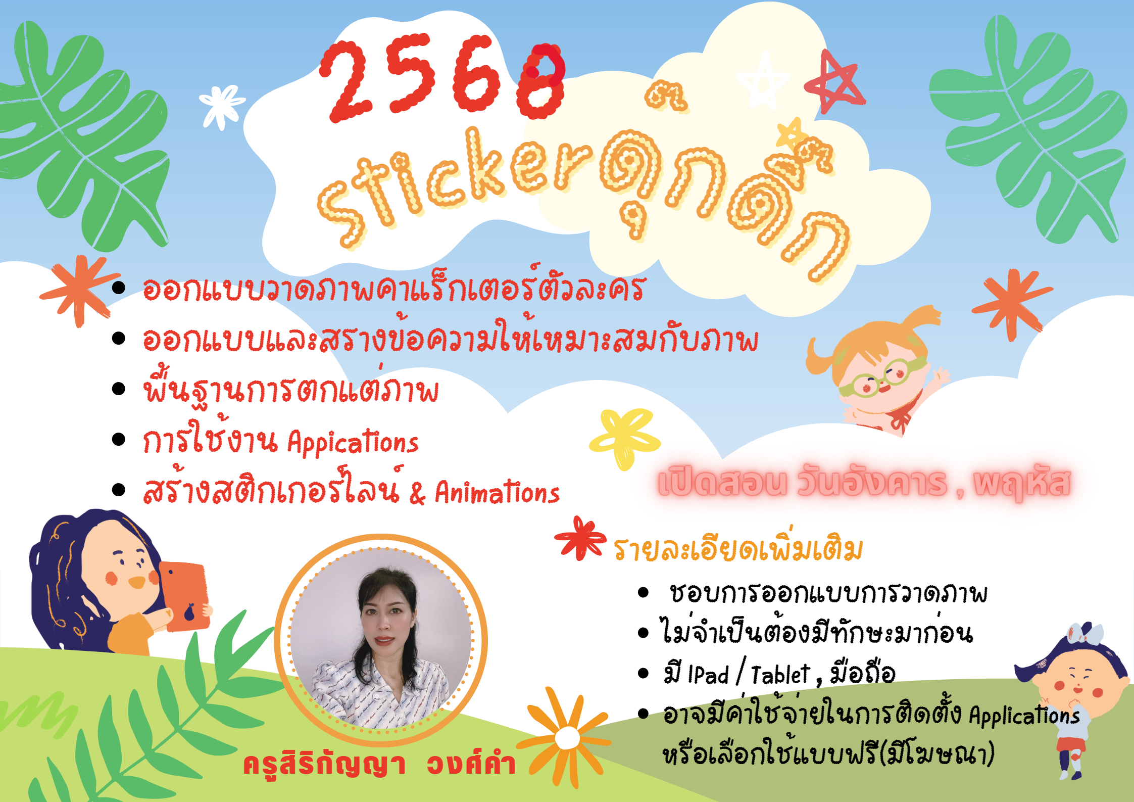 ชื่อวิชา : Stickerดุ๊กดิ๊ก ครูผู้สอน : สิริกัญญา วงศ์คำ ระดับชั้นที่เปิดสอน : ม.1 ม.2 ม.3 ดูรายละเอียดเพิ่มเติม.. |