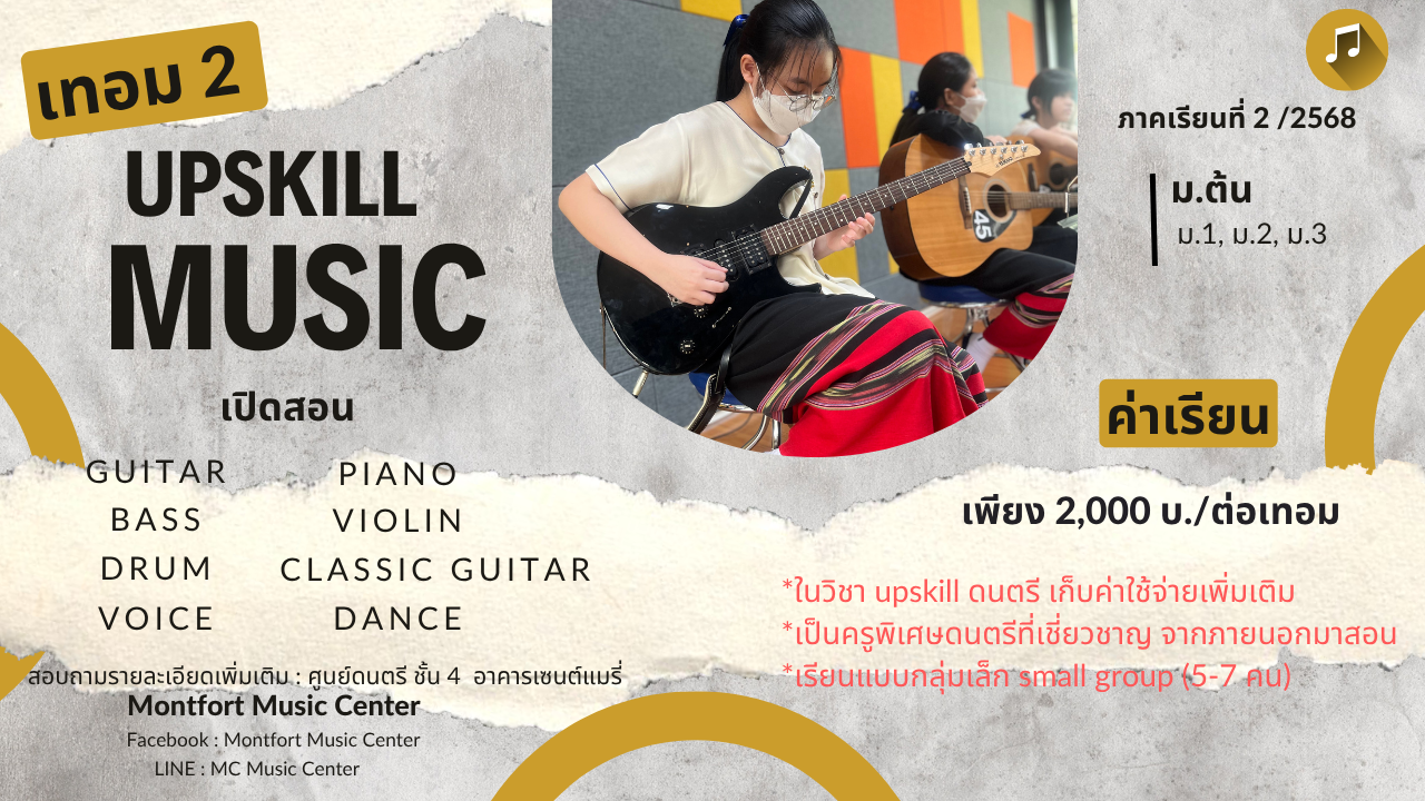 ชื่อวิชา : กีตาร์ (GUITAR) & กีตาร์ไฟฟ้า (Electric GUITAR) ศูนย์ดนตรี ครูผู้สอน : ศุภกิจ สุบินมิตร์ ระดับชั้นที่เปิดสอน : ม.1 ม.2 ม.3 ดูรายละเอียดเพิ่มเติม.. |