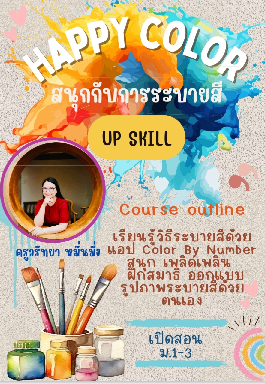 ชื่อวิชา : HAPPY COLOR : สนุกกับการระบายสี ครูผู้สอน : วรัทยา หมั่นมั่ง ระดับชั้นที่เปิดสอน : ม.1 ม.2 ม.3 ดูรายละเอียดเพิ่มเติม.. |