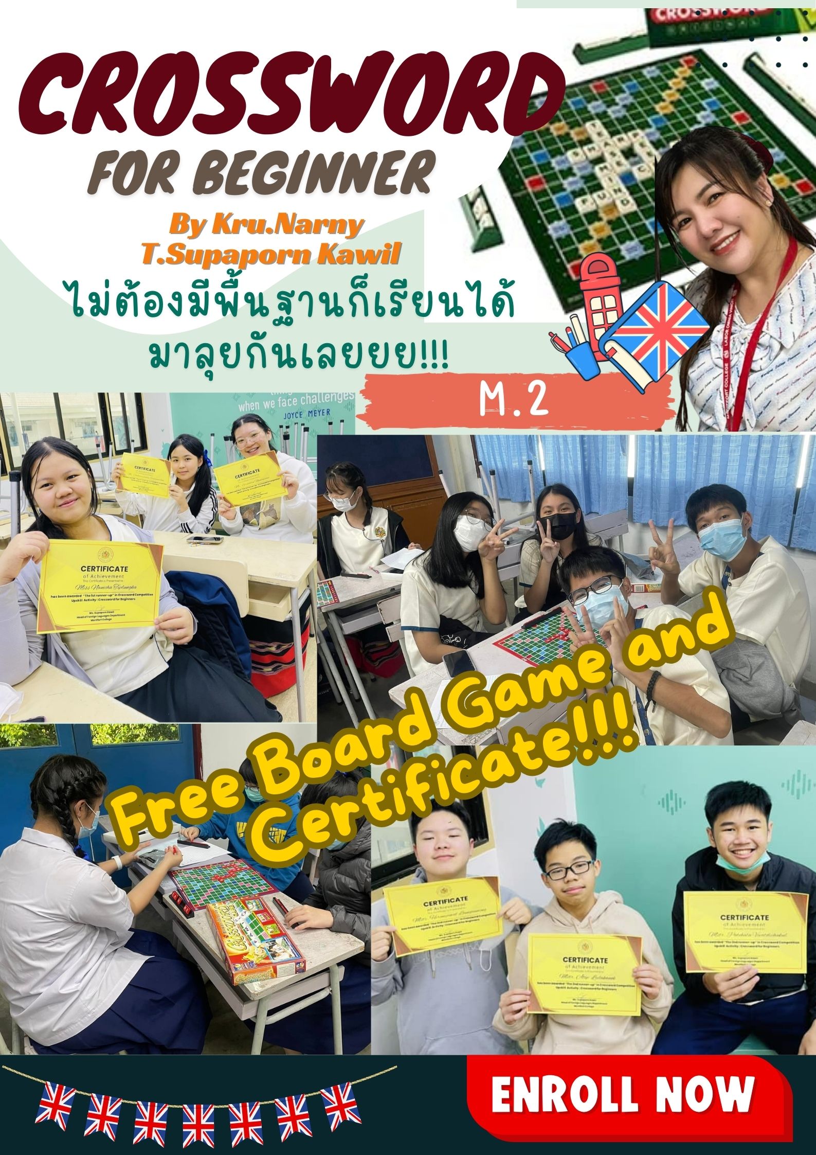 ชื่อวิชา : Crossword For Beginner ครูผู้สอน : สุภาพร กาวิล ระดับชั้นที่เปิดสอน : ม.2 ดูรายละเอียดเพิ่มเติม.. |
