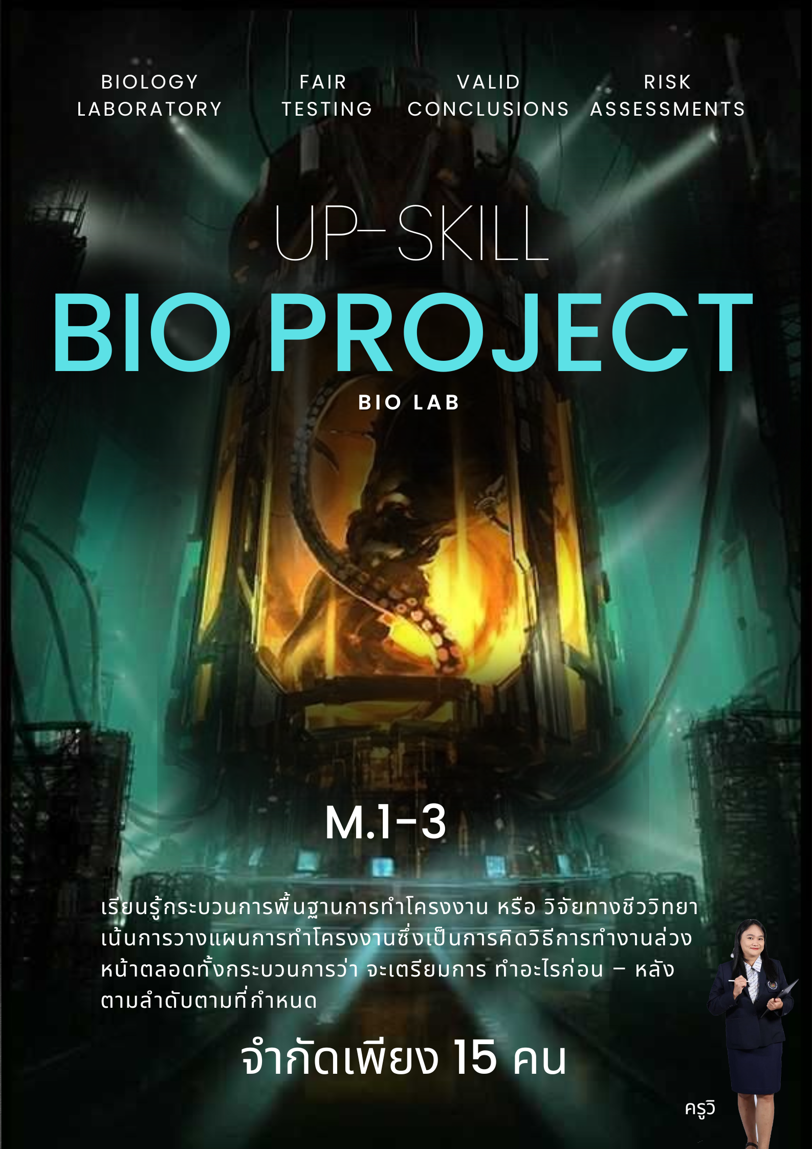 ชื่อวิชา : BIO PROJECT ครูผู้สอน : พิจิตวรรณ นันต๊ะภาพ ระดับชั้นที่เปิดสอน : ม.1 ม.2 ม.3 ดูรายละเอียดเพิ่มเติม.. |