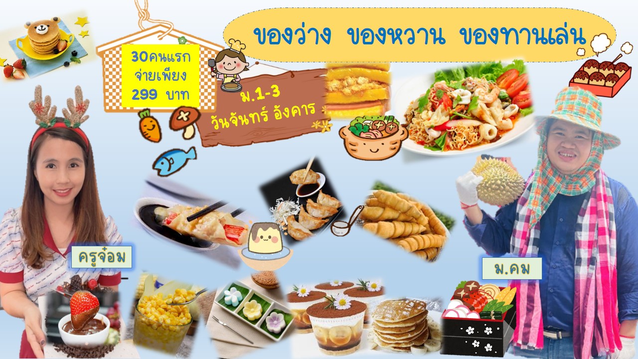 ชื่อวิชา : ของว่าง ของหวาน ของทานเล่น ครูผู้สอน : ศิริขวัญ แก้วแย้ม ระดับชั้นที่เปิดสอน : ม.1 ม.2 ม.3 ดูรายละเอียดเพิ่มเติม.. |