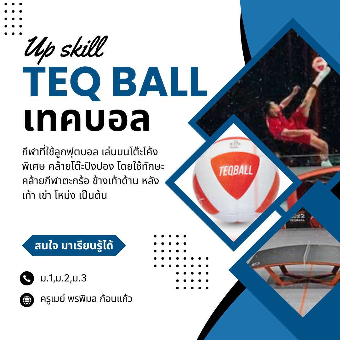 ชื่อวิชา : เทคบอล Teq ball ครูผู้สอน : พรพิมล ก้อนแก้ว ระดับชั้นที่เปิดสอน : ม.1 ม.2 ม.3 ดูรายละเอียดเพิ่มเติม.. |