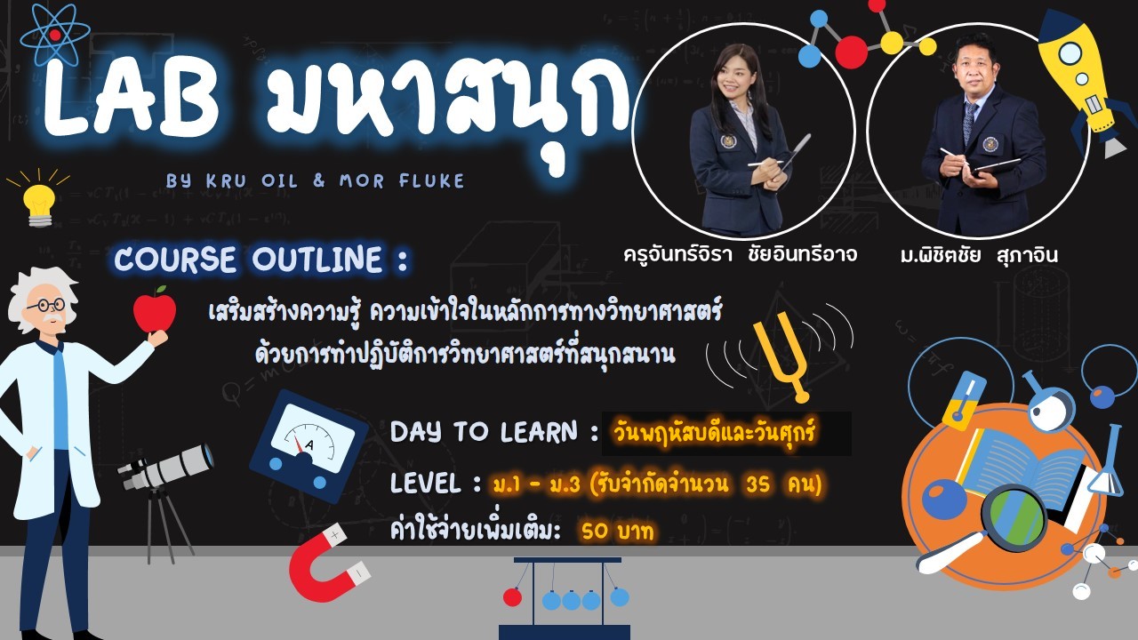 ชื่อวิชา : Lab มหาสนุก ครูผู้สอน : จันทร์จิรา ชัยอินทรีอาจ ระดับชั้นที่เปิดสอน : ม.1 ม.2 ดูรายละเอียดเพิ่มเติม.. |