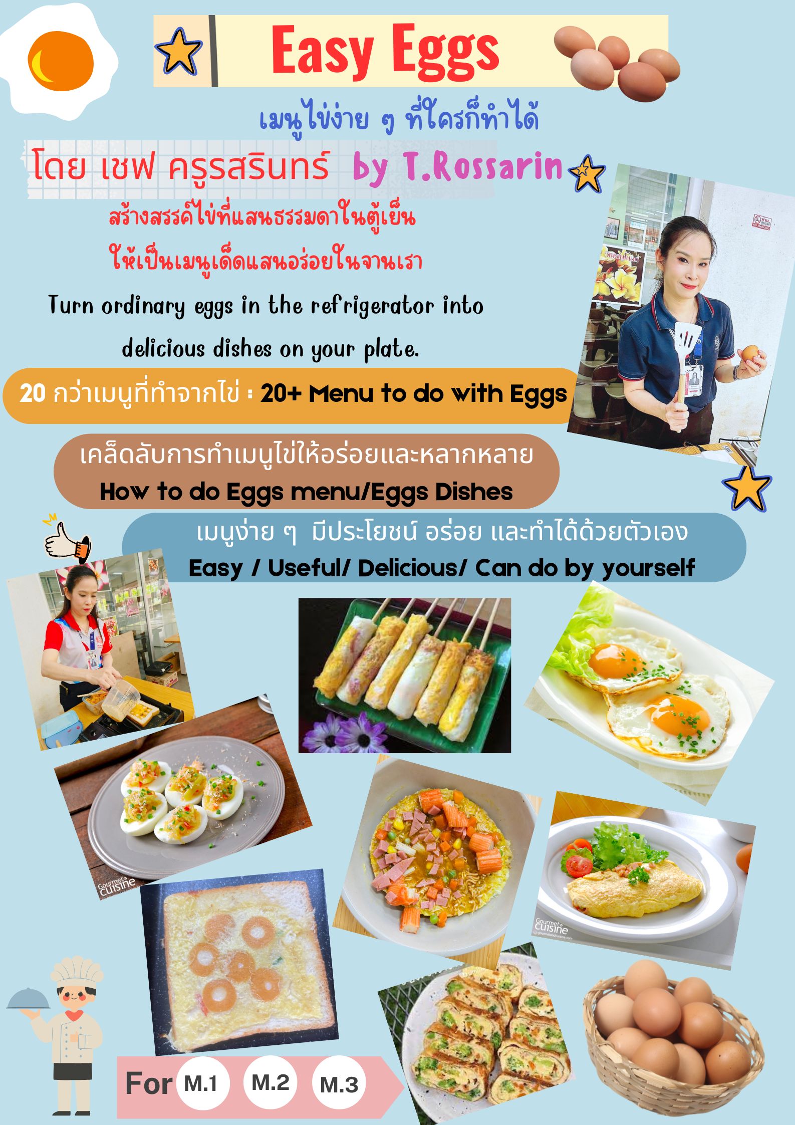 ชื่อวิชา : Easy Eggs (เมนูไข่ง่าย ๆ ที่ใครก็ทำได้) ครูผู้สอน : รสรินทร์ รตนประภา ระดับชั้นที่เปิดสอน : ม.1 ม.2 ม.3 ดูรายละเอียดเพิ่มเติม.. |