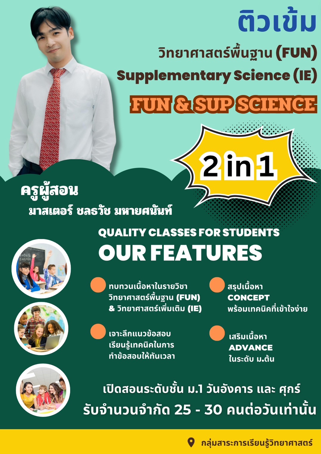 ชื่อวิชา : Fun & Sup SCIENCE M.1 ครูผู้สอน : ชลธวัช มหายศนันท์ ระดับชั้นที่เปิดสอน : ม.1 ดูรายละเอียดเพิ่มเติม.. |