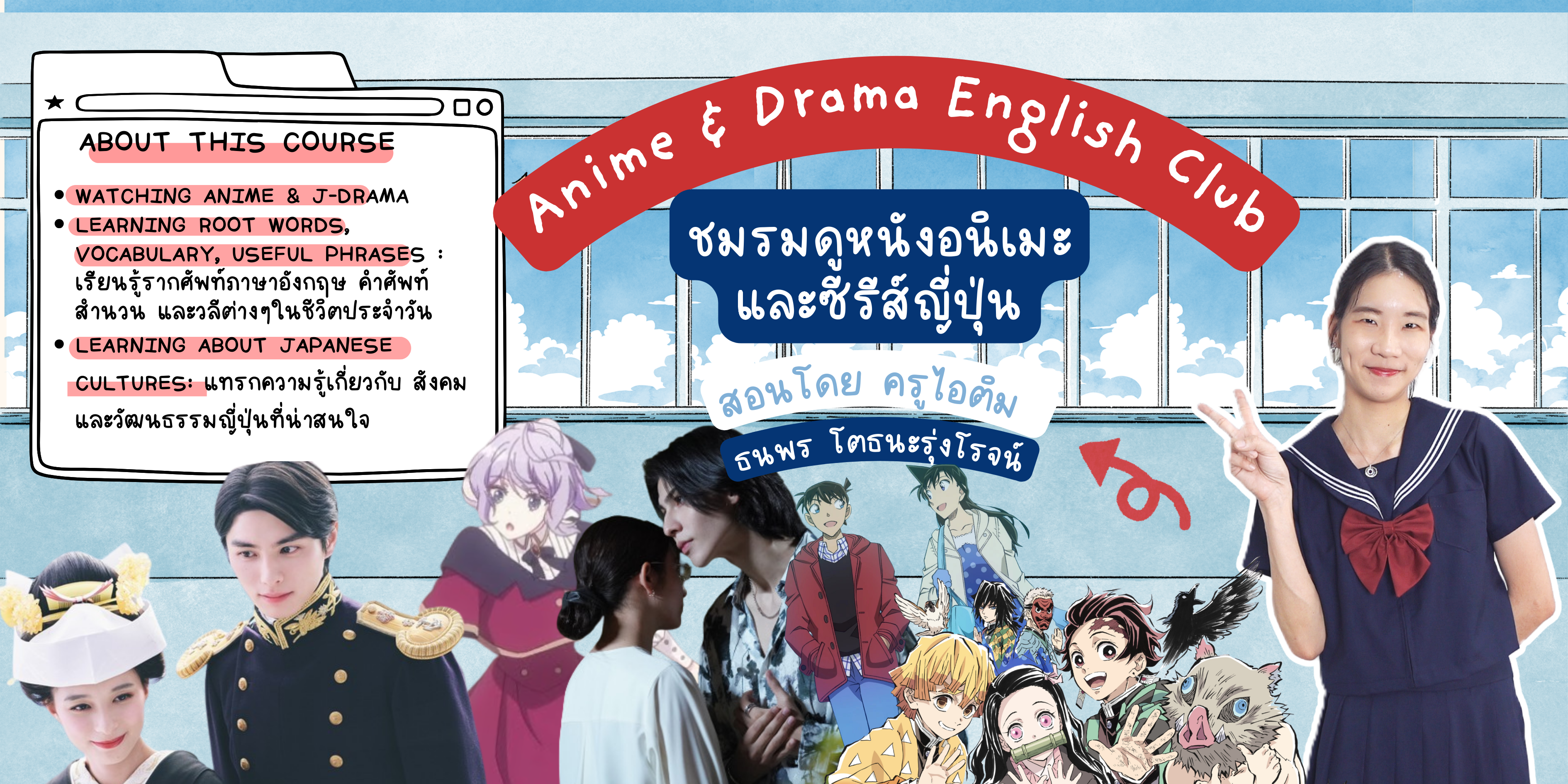 ชื่อวิชา : Anime & Drama English Club ชมรมดูหนังอนิเมะและซีรีส์ญี่ปุ่น ครูผู้สอน : ธนพร โตธนะรุ่งโรจน์ ระดับชั้นที่เปิดสอน : ม.1 ม.2 ม.3 ดูรายละเอียดเพิ่มเติม.. |