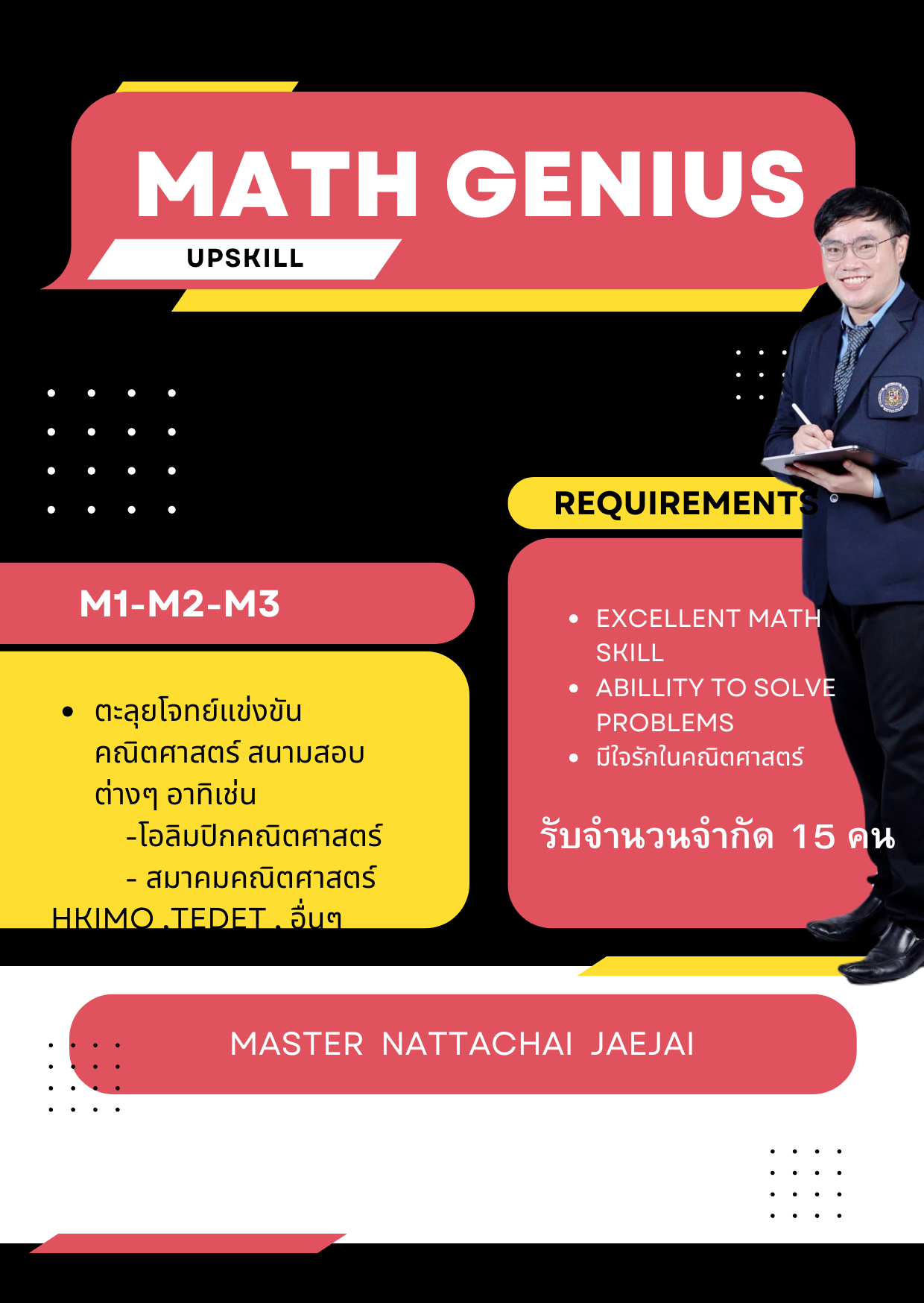 ชื่อวิชา : MATH GENIUS ครูผู้สอน : ณัฏฐชัย แจ้ใจ ระดับชั้นที่เปิดสอน : ม.1 ม.2 ม.3 ดูรายละเอียดเพิ่มเติม.. | Arts & Design |