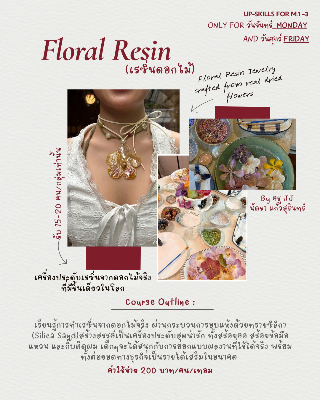 ชื่อวิชา : Floral Resin (เรซิ่นดอกไม้) ครูผู้สอน : นัดชา แก้วสุรินทร์ ระดับชั้นที่เปิดสอน : ม.1 ม.2 ม.3 ดูรายละเอียดเพิ่มเติม.. |