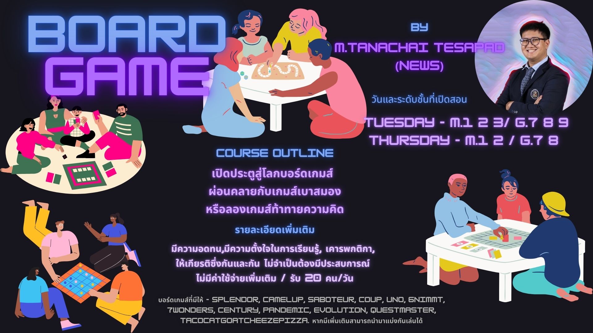 ชื่อวิชา : Boardgames ครูผู้สอน : ธนชัย เทศะแพทย์ ระดับชั้นที่เปิดสอน : ม.1 ม.2 ม.3 ดูรายละเอียดเพิ่มเติม.. |