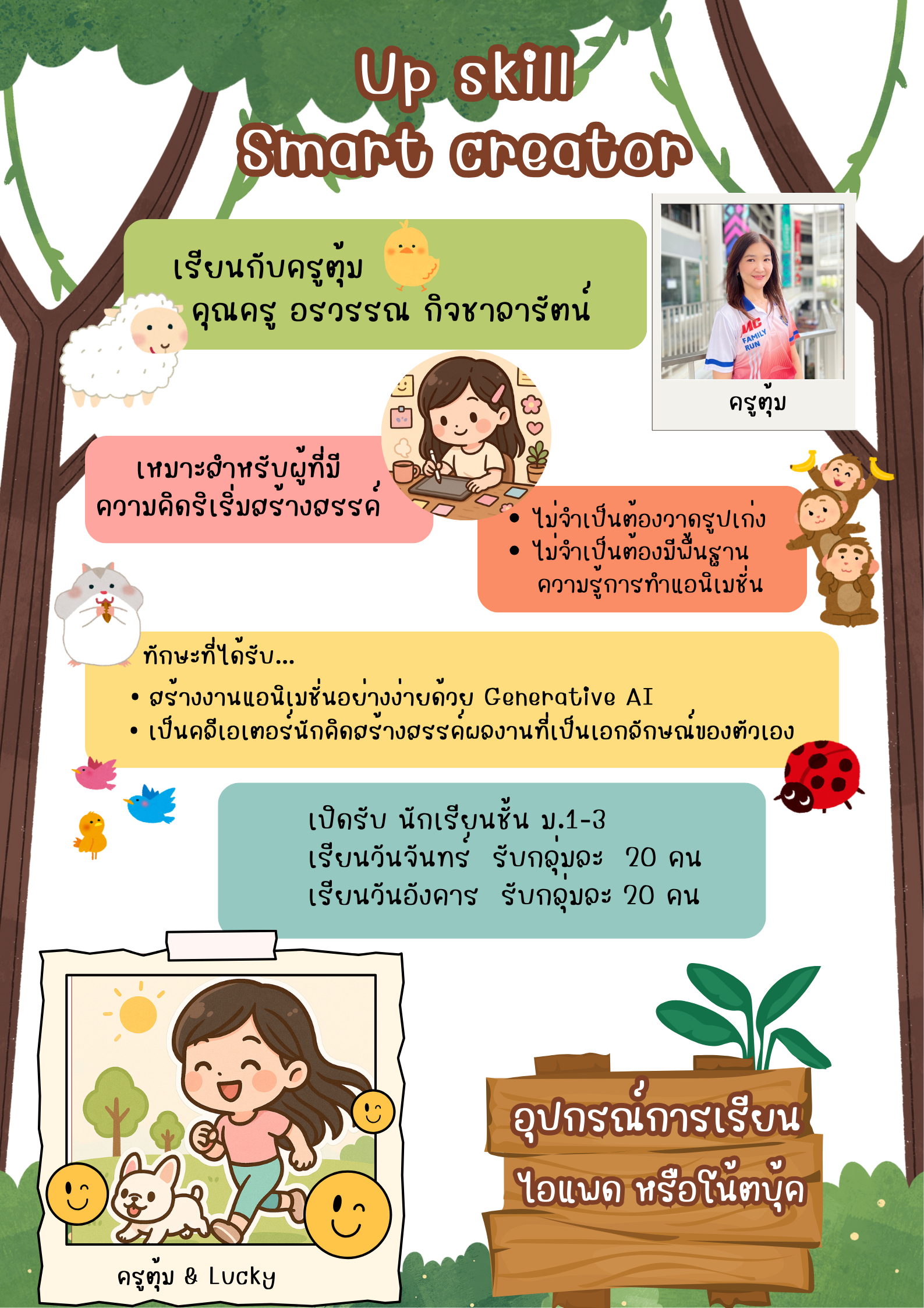 ชื่อวิชา : Smart Creator ครูผู้สอน : อรวรรณ กิจชาลารัตน์ ระดับชั้นที่เปิดสอน : ม.1 ม.2 ม.3 ดูรายละเอียดเพิ่มเติม.. |