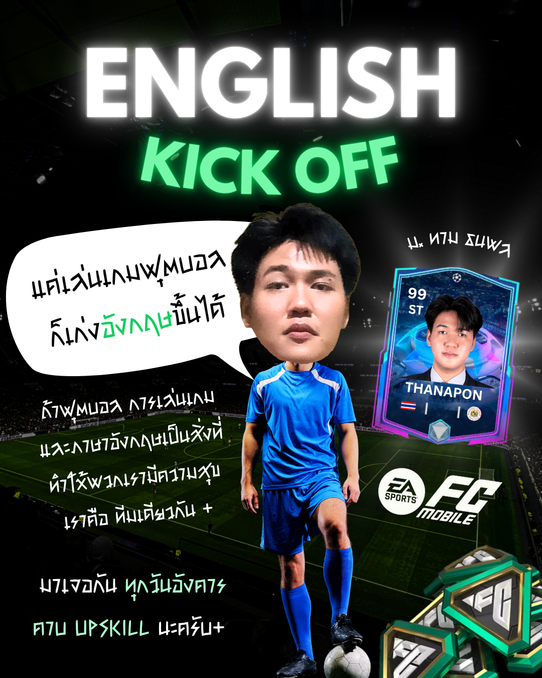 ชื่อวิชา : English Kick Off  อังกฤษติดเล่น with ม.ทาม ธนพล  ครูผู้สอน : ธนพล โนราช ระดับชั้นที่เปิดสอน : ม.1 ม.2 ม.3 ดูรายละเอียดเพิ่มเติม.. |