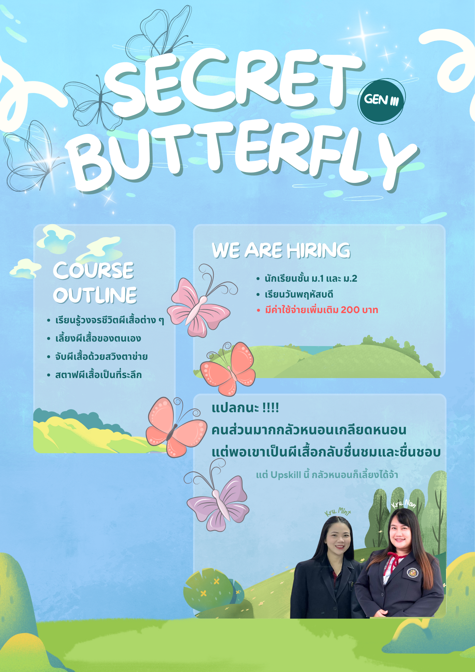 ชื่อวิชา : Secret Butterfly ความลับของผีเสื้อ ครูผู้สอน : ปิยวรรณ นันตี ระดับชั้นที่เปิดสอน : ม.1 ม.2 ดูรายละเอียดเพิ่มเติม.. |