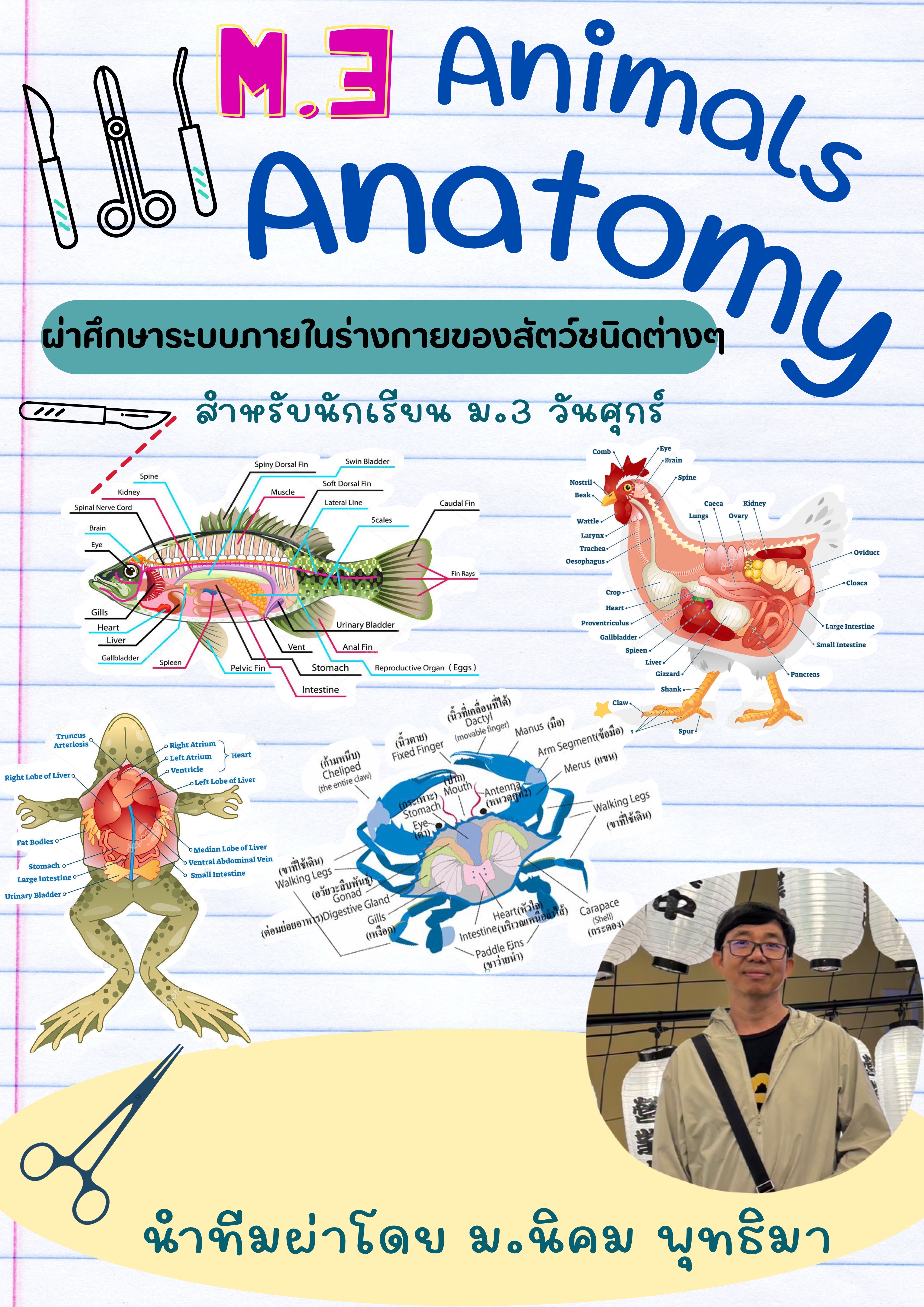 ชื่อวิชา : Animals Anatomy ครูผู้สอน : นิคม พุทธิมา ระดับชั้นที่เปิดสอน : ม.3 ค่าใช้จ่าย : - ดูรายละเอียดเพิ่มเติม.. |