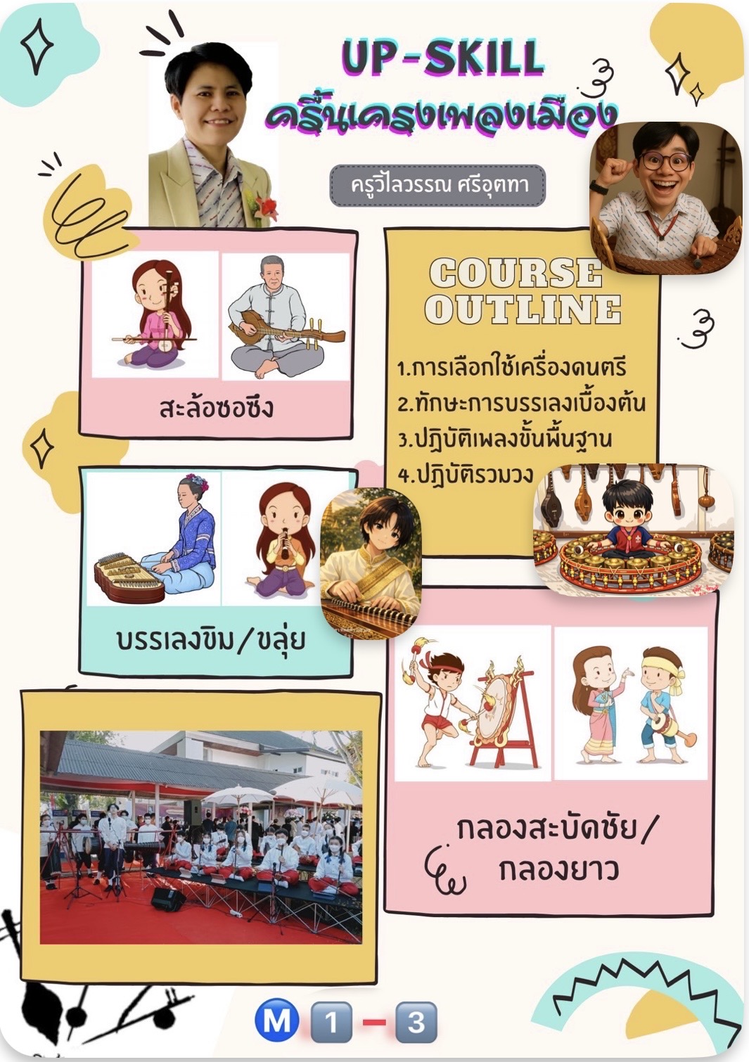 ชื่อวิชา : ครื้นเครงเพลงเมือง ครูผู้สอน : วิไลวรรณ ศรีอุตทา ระดับชั้นที่เปิดสอน : ม.1 ม.2 ม.3 ค่าใช้จ่าย : - ดูรายละเอียดเพิ่มเติม.. |