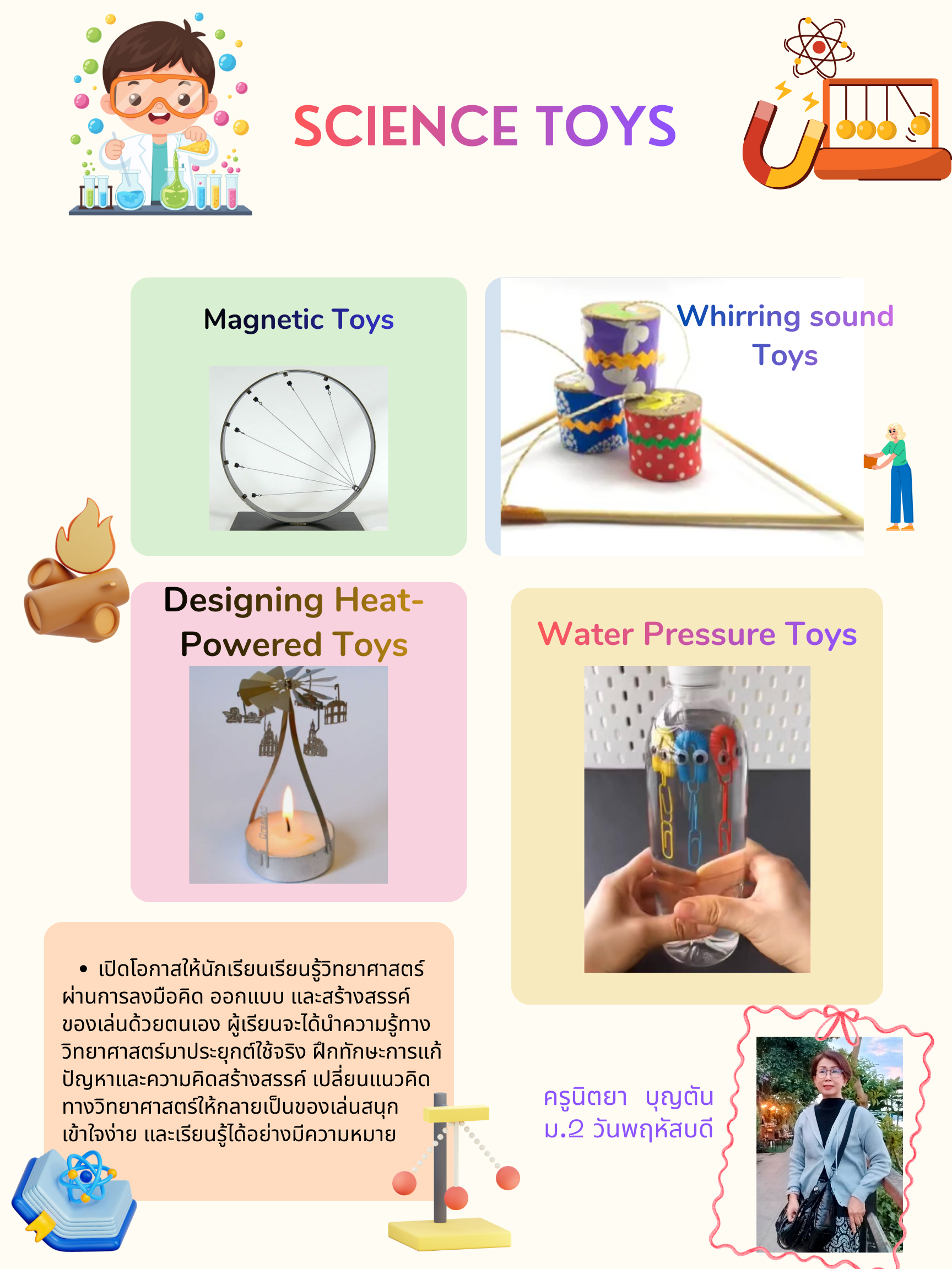 ชื่อวิชา : ของเล่นวิทย์ (Science Toys) ครูผู้สอน : นิตยา บุญตัน ระดับชั้นที่เปิดสอน : ม.2 ค่าใช้จ่าย : - ดูรายละเอียดเพิ่มเติม.. |