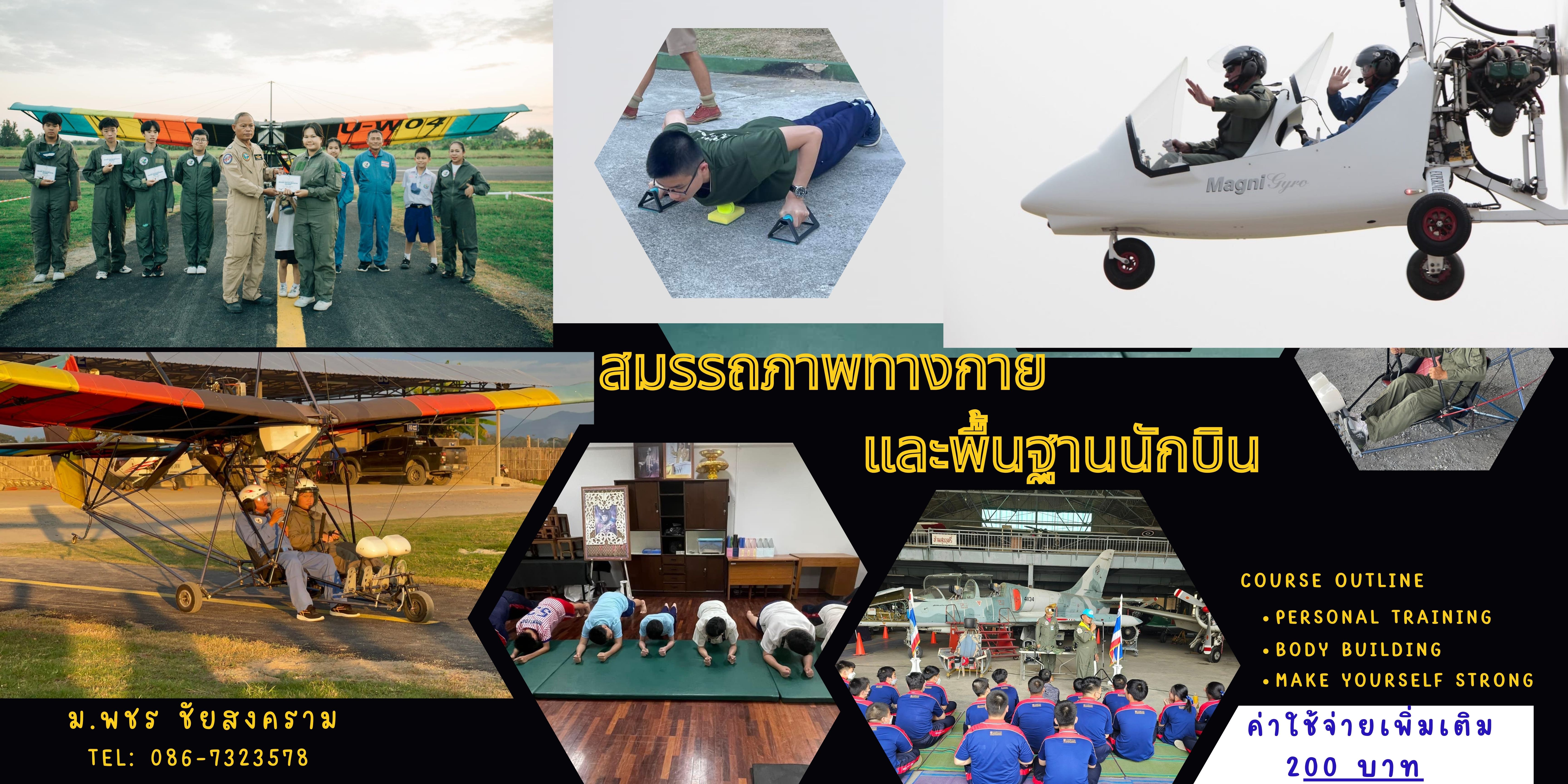 ชื่อวิชา : สมรรถภาพทางกาย และพื้นฐานนักบิน ครูผู้สอน : พชร ชัยสงคราม ระดับชั้นที่เปิดสอน : ม.1 ม.2 ค่าใช้จ่าย : - ดูรายละเอียดเพิ่มเติม.. |