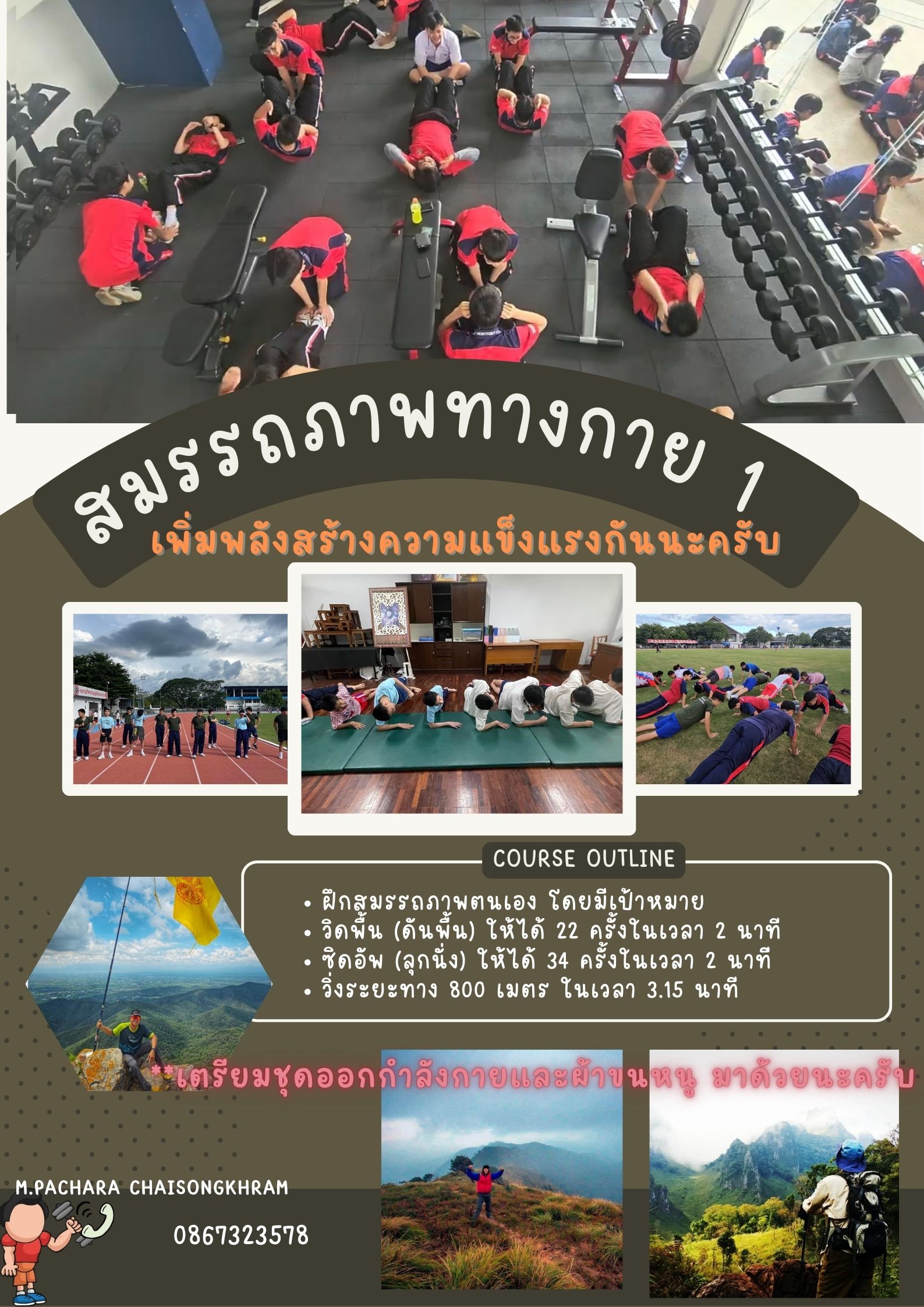 ชื่อวิชา : สมรรถภาพทางกาย 1 ครูผู้สอน : พชร ชัยสงคราม ระดับชั้นที่เปิดสอน : ม.3 ม.4 ม.5 ค่าใช้จ่าย : - ดูรายละเอียดเพิ่มเติม.. |
