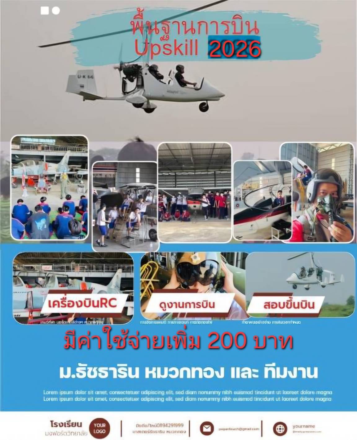 ชื่อวิชา : พื้นฐานการบิน ครูผู้สอน : ธัชธาริน หมวกทอง ระดับชั้นที่เปิดสอน : ม.1 ม.2 ม.3 ม.4 ม.5 ค่าใช้จ่าย : - ดูรายละเอียดเพิ่มเติม.. |
