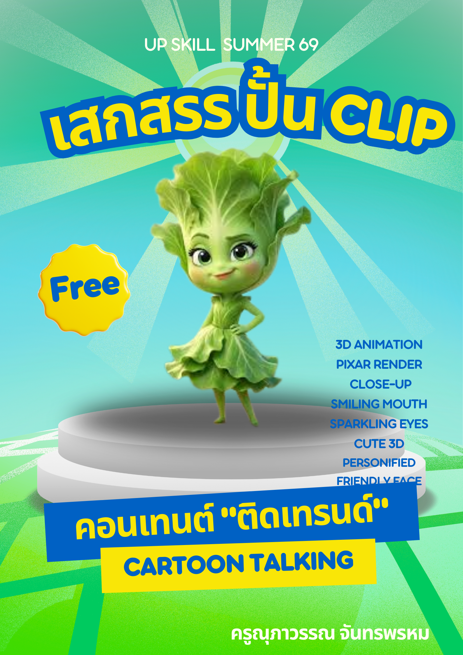 ชื่อวิชา : เสกสรร ปั้น Clip ครูผู้สอน : ณุภาวรรณ จันทร์พรหม ระดับชั้นที่เปิดสอน : ม.3 ค่าใช้จ่าย : - ดูรายละเอียดเพิ่มเติม.. |