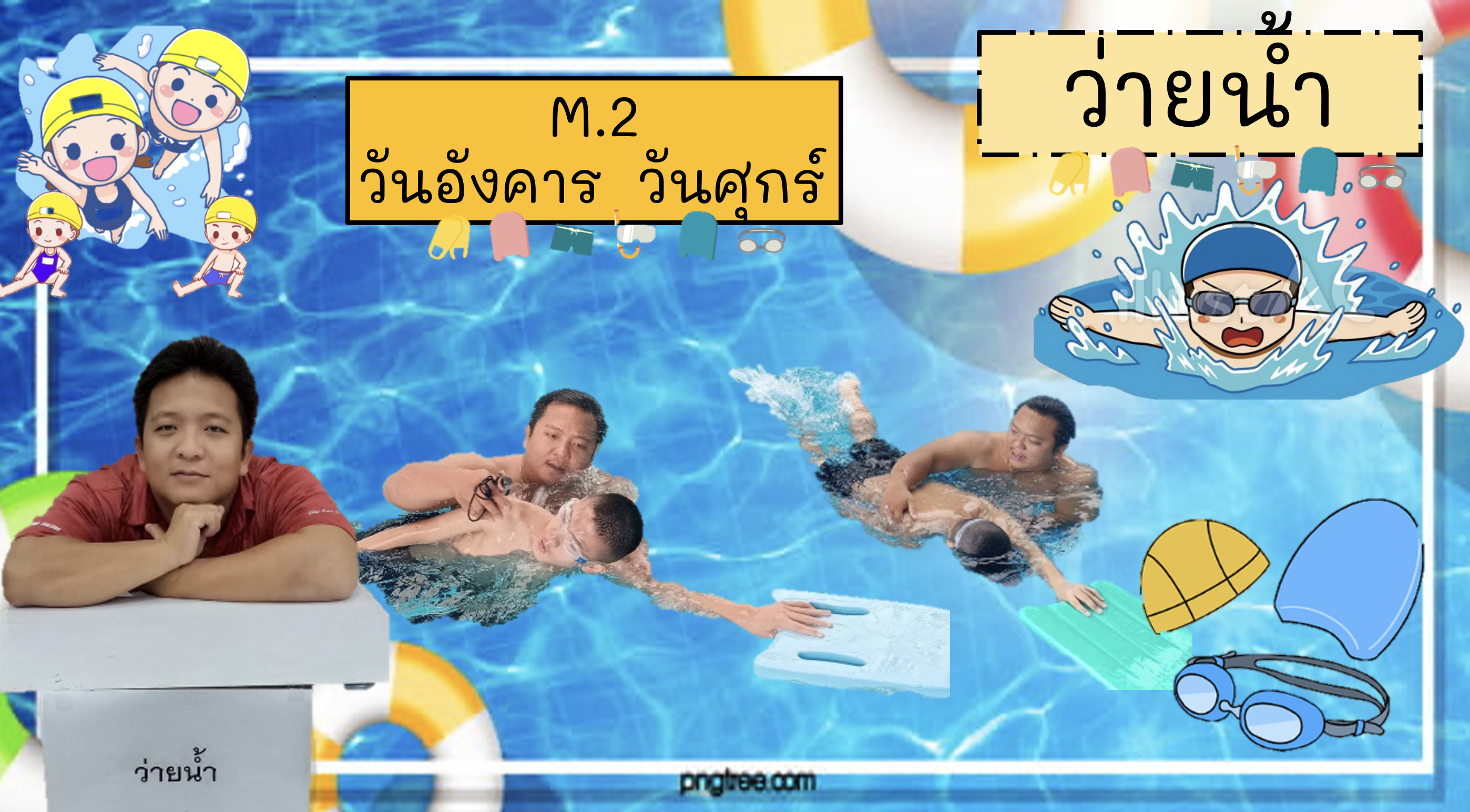 ชื่อวิชา : ว่ายน้ำ ครูผู้สอน : ณัฐพงษ์ เมตตา ระดับชั้นที่เปิดสอน : ม.2 ม.3 ค่าใช้จ่าย : - ดูรายละเอียดเพิ่มเติม.. |