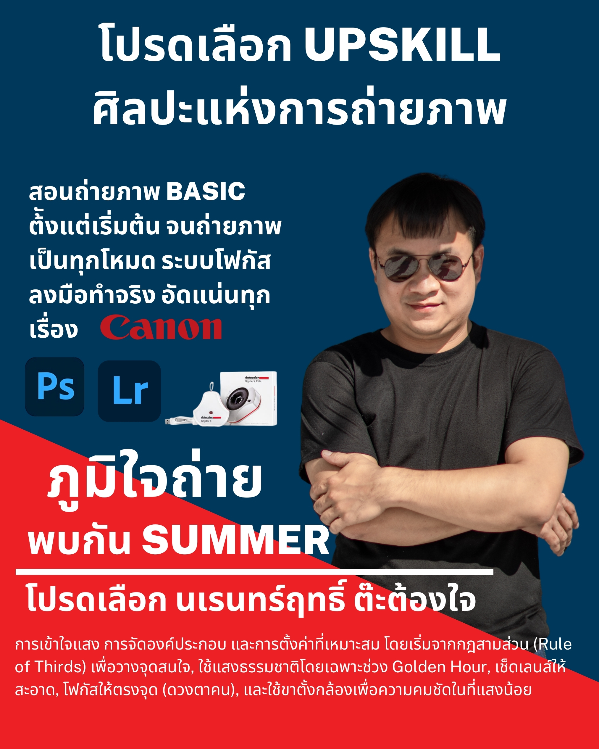 ชื่อวิชา : Upskill ศิลปะแห่งการถ่ายภาพ ครูผู้สอน : นเรนทร์ฤทธิ์ ต๊ะต้องใจ ระดับชั้นที่เปิดสอน : ม.1 ม.2 ม.3 ค่าใช้จ่าย : - ดูรายละเอียดเพิ่มเติม.. |