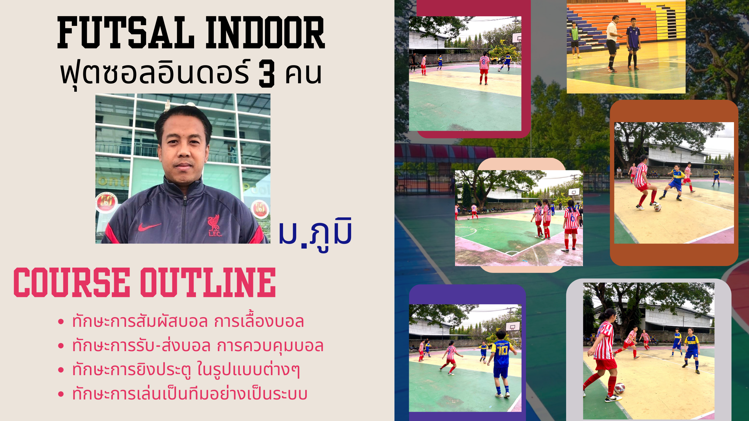 ชื่อวิชา : ฟุตซอล อินดอร์ 3 คน ครูผู้สอน : ภูมิ แพทย์คดี ระดับชั้นที่เปิดสอน : ม.1 ม.2 ม.3 ม.4 ม.5 ค่าใช้จ่าย : - ดูรายละเอียดเพิ่มเติม.. |